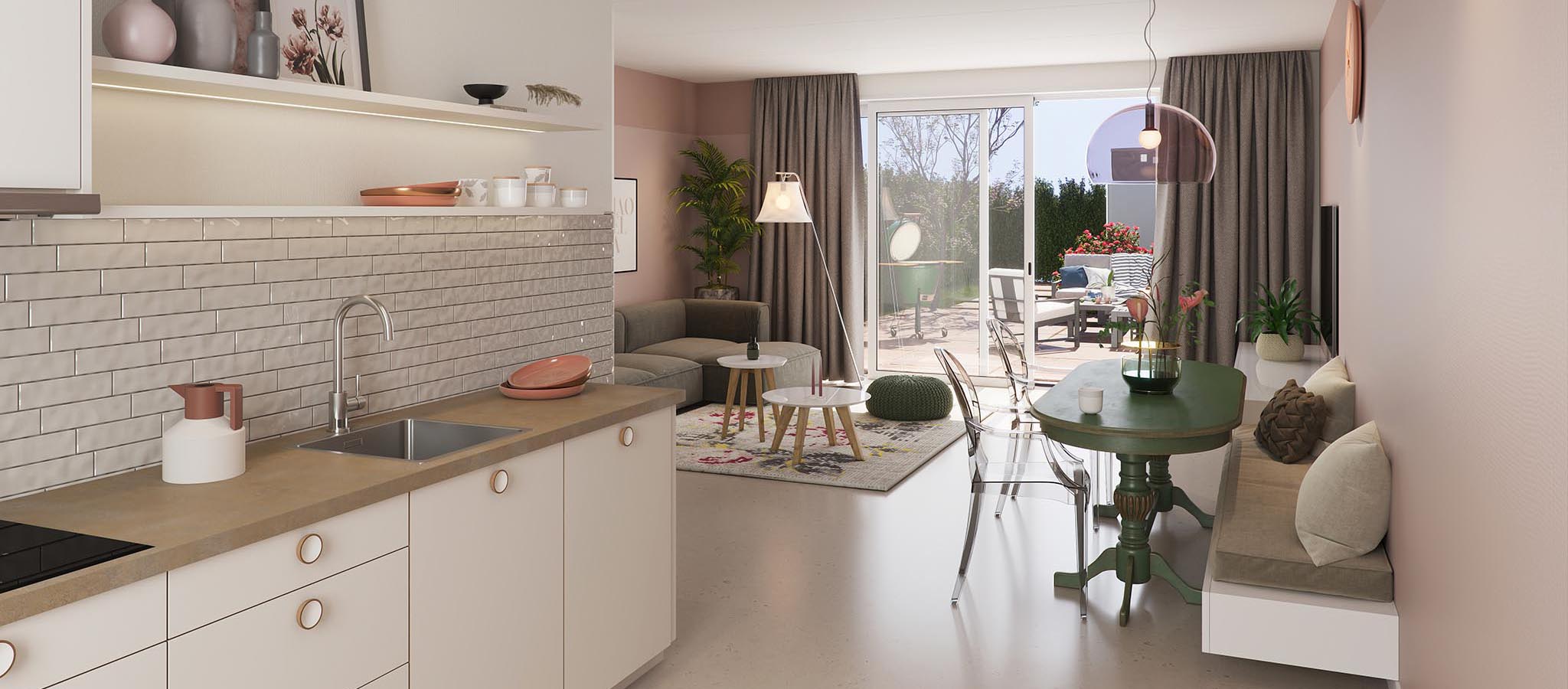 De 60 woningen in het Dorpshart 4I worden standaard opgeleverd met een complete Bruynzeel keuken, luxe sanitair en mooie wand- en vloertegels. De woningen worden dus al heel compleet opgeleverd, maar wil je jouw nieuwe huis net die finishing touch geven met kleine of zelfs grote aanpassingen? Bekijk dan de koperskeuze prijslijst en de optietekeningen. Deze geeft je een overzicht van de verschillende opties die je kunt kiezen. Goed om nu alvast over na te denken!
